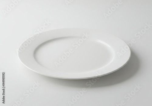 Simple white plate on a clean white surface, ready for food or culinary presentation, showcasing minimalist design