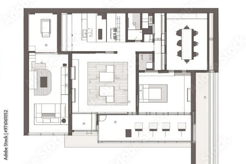 simplified, floor, plan, family, room, left, dining, area, front, kitchen, architecture, drawing, design, house, building, home, blueprint, vignetting, construction, architect, interior, project, illustration, vector, calendar, business, architectural, furniture, line, concept, draw