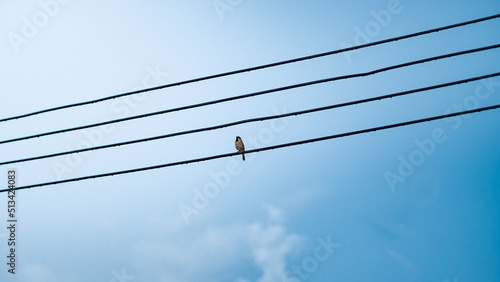 bird, blue, sky, nature, cloud, wallpaper, wire, line, power, bird