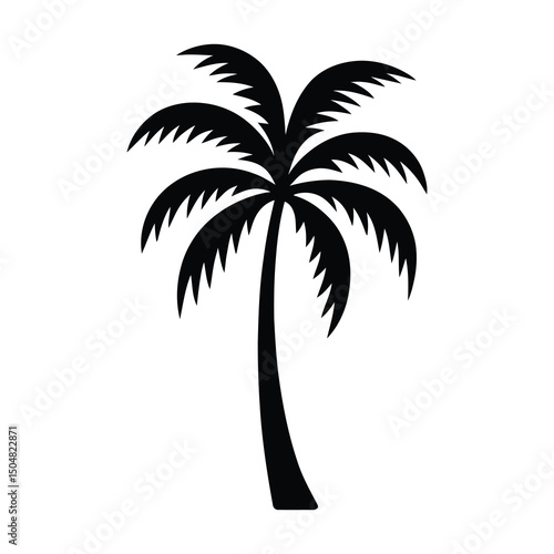 palm tree, silhouette, black-and-white, tropical, summer, vacation, beach, ocean, paradise, holiday, travel, design, illustration, graphic, symbol, icon, nature, plant, tree, leaf, frond, exotic, clip art, isolated, white background, simple, minimalist, elegant, logotype, branding, element, vector, digital artwork, printable, download