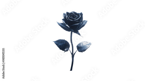 Single Dark Blue Rose on Transparent Background Elegant Floral Still Life