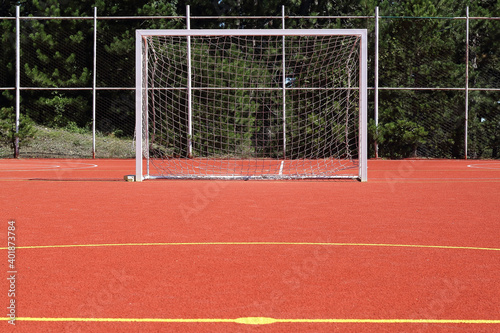 soccer, football, field, sport, goal, net, green, stadium, game, court, competition, ball, play, sport, line, empty, pitch, white, ground, park, post, recreation, area, blank, border, brown, center, design, exercise, frame, fun, gate, goal, kick, leisure, lifestyle, nobody, orange, red, perspective, surface, target, texture, training, urban, view