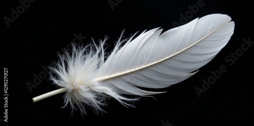Single large white feather, intricate detail, black backdrop, lightness, freedom, feather