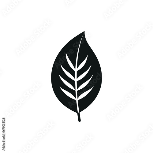 Single leaf silhouette icon, flat vector illustration, isolated on white background