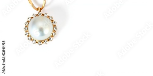 Single lustrous pearl resting elegantly on a plain white background, jewelry, object, gem