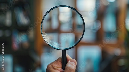 Single magnifying glass with black handle, close-up view, symbolizing search and business analysis
