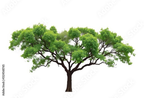 Single, majestic tree isolated on pure white background, artwork, summer