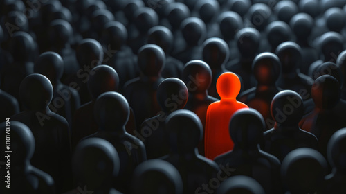 Single Orange Figure Among Many Black Figures, Concept of Uniqueness
