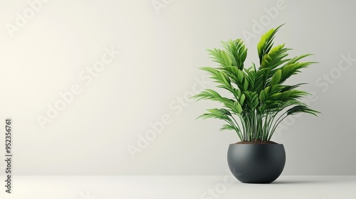 Single potted plant, on a white background, 3D render illustration, copy space for stock photo with minimal concept, No logo, No Trademark, No text