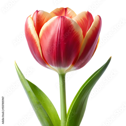 Single red and yellow tulip flower isolated on a white background ai generated png