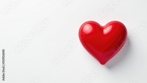 Single red heart shape on pure white background, symbol, minimal