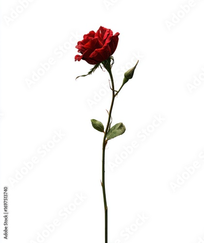 rose, red, flower, floral, bloom, blossom, isolated, white, background, stem, bud, plant, nature, beauty, single, romantic, love, valentine, gift, elegant, delicate, botanical, cut, macro, detail, vibrant, freshness, flora, leaf, spring, summer, growth, garden, blooming, flowering, tenderness, object, beautiful, decorative, bright, colours, high-coloured, natural, seasonal, closeup, cut-out