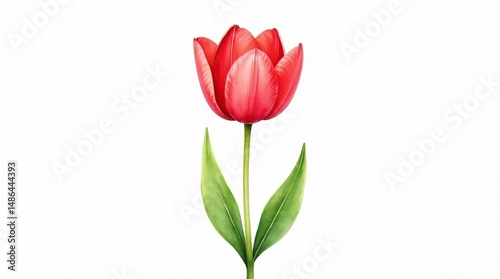 Single red tulip illustration, bright watercolor wash, crisp white background, fresh, simple floral design , bright, simple, spring