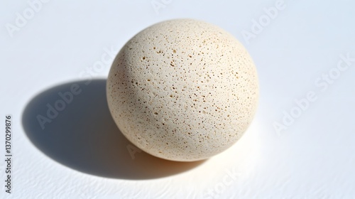 Single Smooth White Egg with Fine Speckles Casting a Shadow on a Bright Background