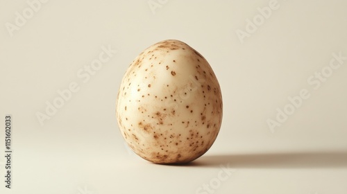 single speckled egg on a neutral background