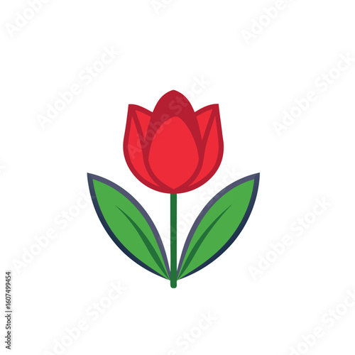 tulip, flower, floral, icon, vector, illustration, botanical, nature, spring, garden, plant, bloom, stem, leaf, graphic, design, clip art, symbol, white background, isolated, outline, silhouette, red, green, yellow, magenta, cyan, blue