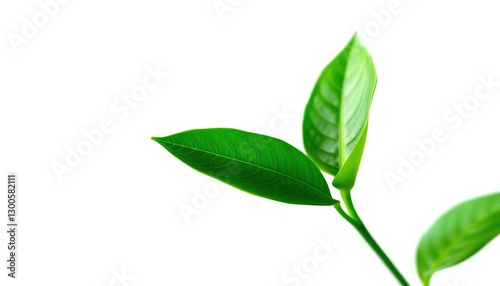 Single vibrant green plant, isolated on pure white, ecology, sprig