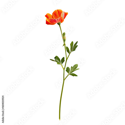 poppy, flower, orange, red, bloom, plant, stem, leaf, green, nature, floral, single, vertical, isolated, detailed, art, illustration, botanical, drawing, graphic, design, vibrant, colours, beauty, decoration, image, object, bright, sharp, simple, elegant, illustrative, studio, closeup, still, life, colourful, flat