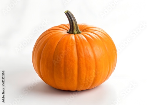 Single, vibrant orange pumpkin on a plain background.
