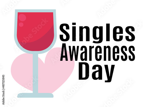 single, day, national, poster, banner, card, postcard, date, february, wine, glasses, nubes, background, love, alone, text, awareness, vector, illustration, isolated, celebration, design, holiday, valentine, positive, loneliness, greeting, appreciation, support, community, cheer