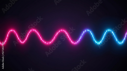 Sinusoidal Light Wave with Pink and Cyan Color Spectrum Against a Dark Gradient Background.