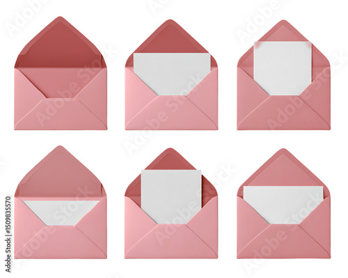 envelope, envelope, pink, mail, post, card, letter, correspondence, communication, message, blank, white, paper, stationery, office, supply, set, collection, template, design, element, graphic, isolated, background, transparent, pastel, shade, tone, colours, hue, various, open, closed, folded, view, angle, perspective, realistic, three-dimensional, rendering, illustration, vector, image, visual, graphic design, branding, marketing, advertising