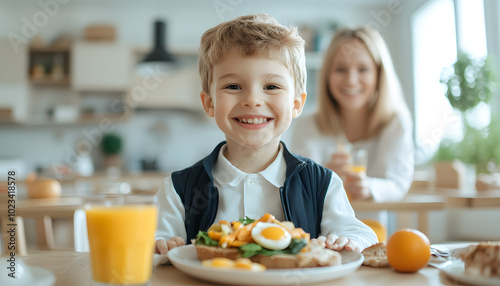 Six-Year-Old Boy Enjoying Breakfast at the Table | Cheerful Morning Routine for Kids
