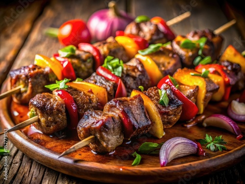 Sizzle! Juicy grilled shish kebabs, low-light BBQ magic.