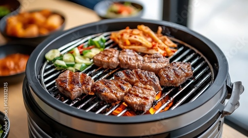 Sizzling Grill Filled with Juicy Meat and Colorful Vegetables Ready to Enjoy