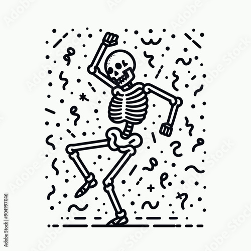 skeleton, dancing, with, confetti, falling, new, year, celebration, party, anatomy, death, halloween, horror, monochrome, silhouette, fear, joint, mystery, grunge, bone, skull, rib, drawing, creepy, drawn, gothic, skeletal, backbone, hand-drawn, human head, vintage, dead, body, isolated, white, bony, art, illustration