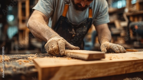 Skilled Craftsman Shaping Wood in Workshop Environment, Showing Precision and Care in Handcrafted Joinery for Quality Woodwork Projects and Furniture Making