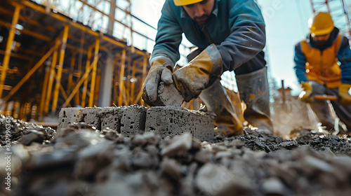 Skilled Masonry Workers Laying Bricks with Precision for Structural Stability on Building Facade - Photo Realistic Concept
