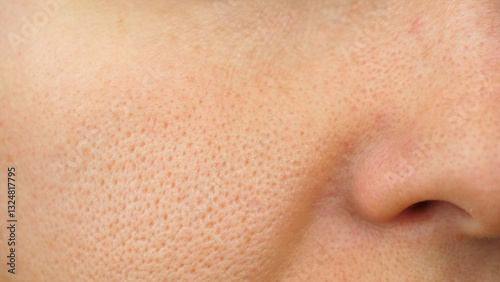skin texture with enlarged pores showing common skin problems. Skin problems such as enlarged pores require professional treatment.