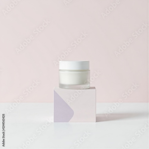 Skincare cream in transparent jar with lid, beauty product for hydration, copy space