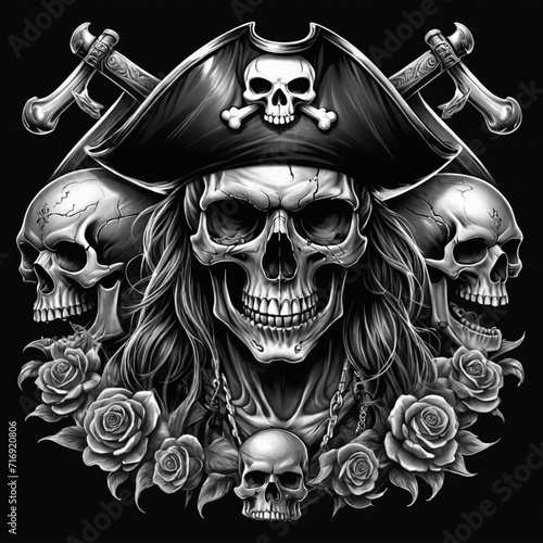 skull, tattoo, head, art, illustration, design, gothic, symbol, face, evil, death, dead, grunge, icon, rock, horror, pirate