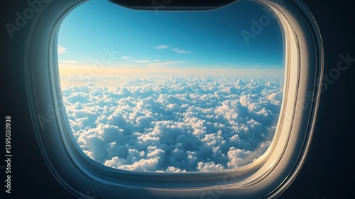 Sky High Tranquility: The Serene Beauty of Clouds Seen from an Airplane Window