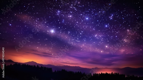 sky, purple, gold, star, illustration, night, celestial, display, beautiful, blend, colours, stunning, twinkle, shimmer, galaxy, universe, cosmic, radiant, aglow, aethereal, sparkle, gloaming, horizon, twilight, dusk, astronomy, heaven, nebula, wonder