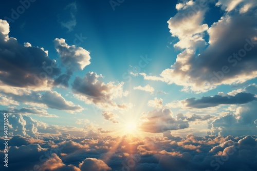 heaven, sunbeam, sunlight, sky, stratosphere, nature, blue, sun, cloudscape, cloud, weather, air, space, abstract, atmosphere, meteorology, sunrise, climate, scene, sunshine, ozone, ray, colours, freedom, cumulus, clear, shine, beam, panorama, scenic, clean, dramatic, evening, background, religion, spiritual, god, thundercloud, overcast, power, calm, heavenly, inspiration, texture, majestic, glow, wallpaper, sunset, landscape