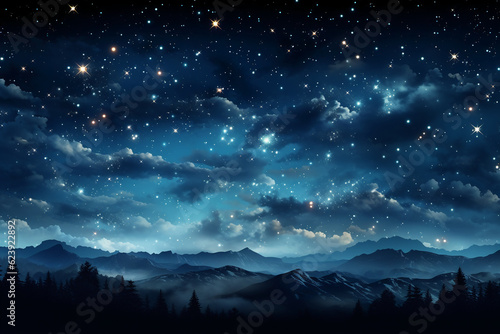 Sky with stars blue background for the christmas holiday illustration. AI generative