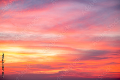 Sky,Beautiful sunset view, luxury soft gradient orange gold clouds and sunlight on the blue dramatic sky perfect for the background, morning, evening,Twilight, climate change,horizontal sunset photo