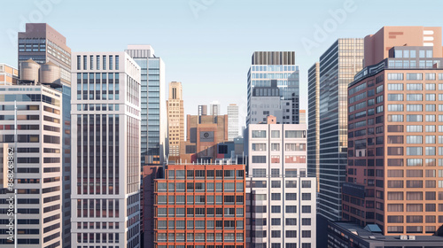 Skyscrapers in a big city financial district. Background image. Created with Generative AI technology.