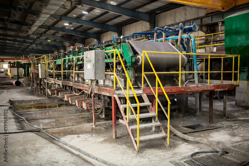 Slate factory, manufacturing technology.Modern equipment and machine tool automation. Technological works for the production of slate. Factory working atmosphere.