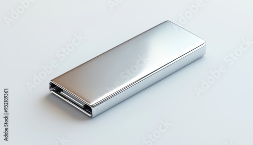 sleek and modern flash drive with its flat body and shiny surface, perfectly positioned on the left side