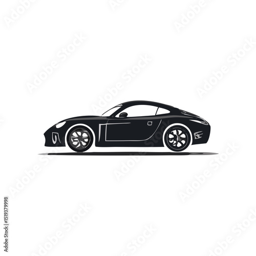Sleek Black Coupe Vehicle Silhouette Symbol Icon Side Profile Illustration