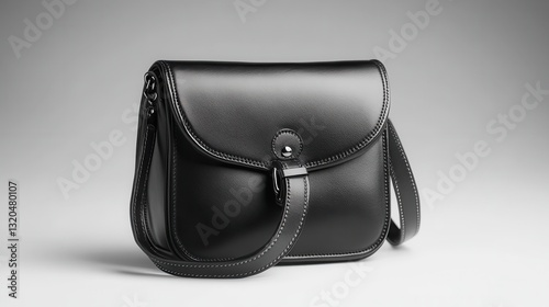 Sleek black leather crossbody bag. Perfect for everyday use.