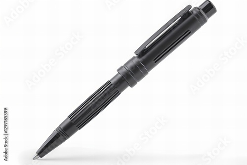 Sleek Black Metal Pen Close-Up on White Background with Cutout Style for Professional Modern Look