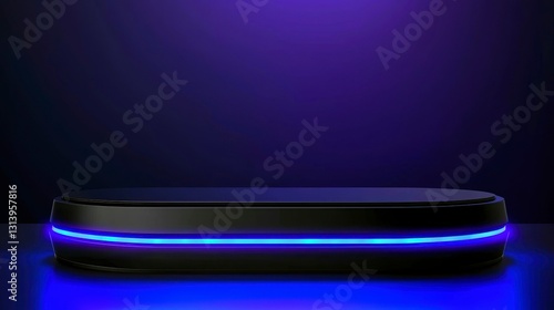 Sleek Black Presentation Podium with Neon Blue Illumination for Product Showcase and Modern Display Backdrop Scene