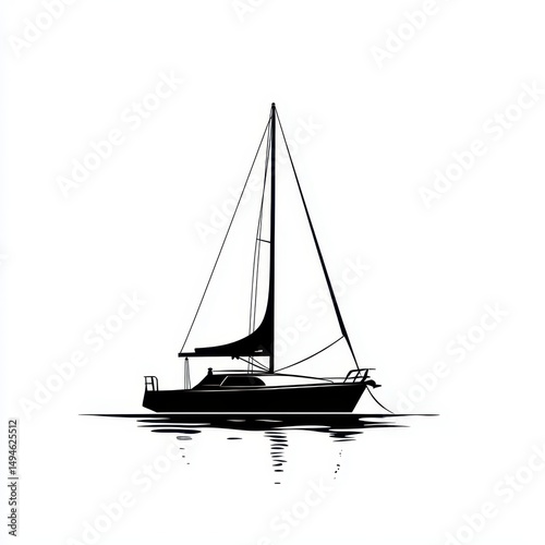 sailboat, yacht, vessel, boat, ship, sailing, nautical, ocean, sea, water, silhouette, black, white, simple, elegant, sleek, graceful, marin, maritime, tranquil, serene, calm, peaceful, quiet, still, summer, sun, day, travel, adventure, freedom, escape, luxury, speed, wind, sail, mast, rigging, deck, hull, shadow, art, graphic, design, image, illustration, vector, minimalist