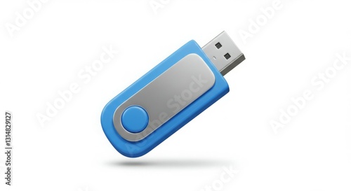 Sleek blue USB flash drive isolated on white background. Ideal for data storage and transfer.