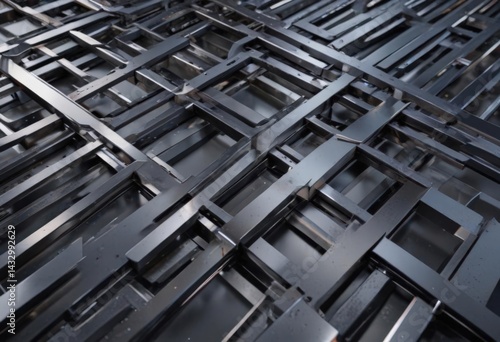 Sleek intersecting metal lines form abstract geometric shapes on a smooth, reflective surface , industrial, steel, futuristic